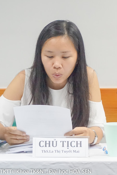 Cô Mai, Chủ tịch Hội đồng đọc quyết định phân công Hội đồng của Ban giám hiệu trường Đại học Hoa Sen