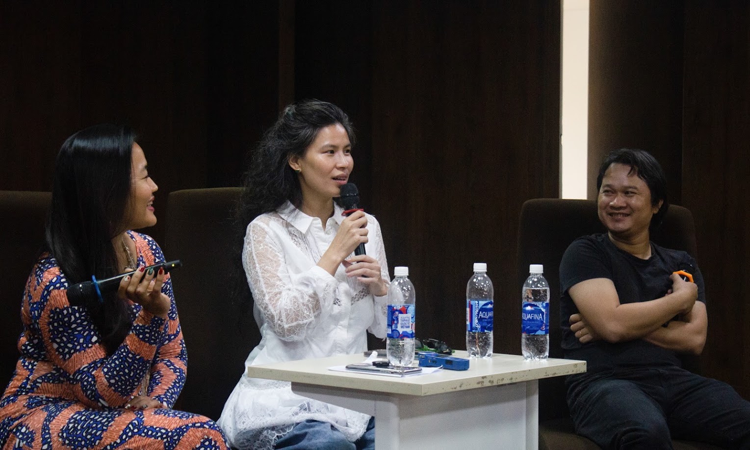 Từ trái qua: Nhà sản xuất phim Jenni Trang Lê, Nhà Thiết kế Thủy Nguyễn và hoạ sỹ, nhà thiết kế mỹ thuật Nguyễn Minh Đương.